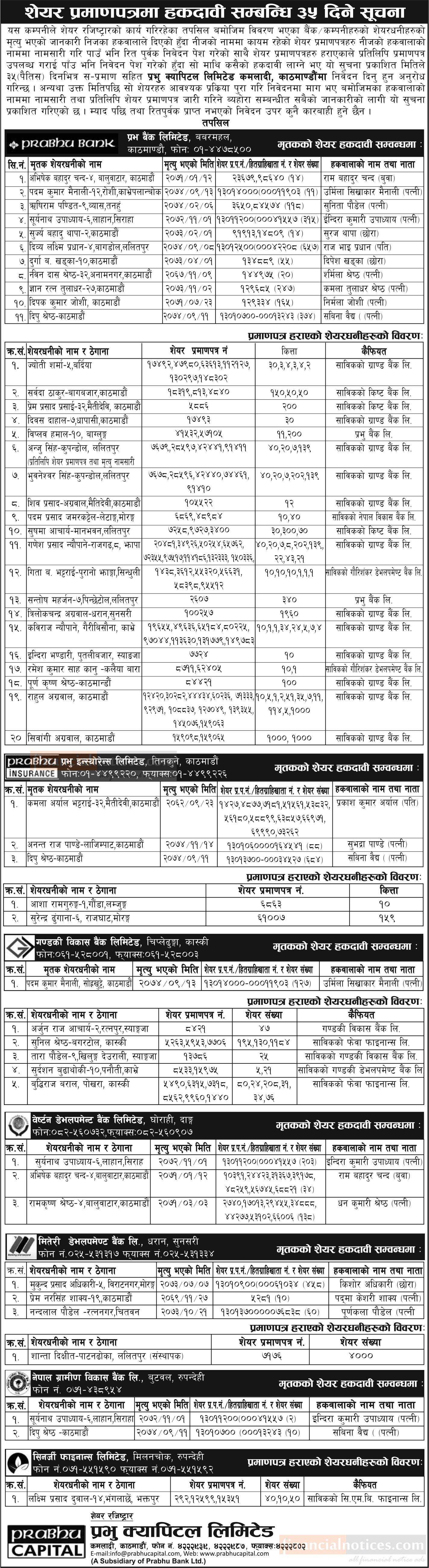 शेयर प्रमाणपत्रमा हकदावीको सूचना