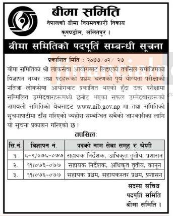 बीमा समितिको पदपूर्ति सम्बन्धी सूचना