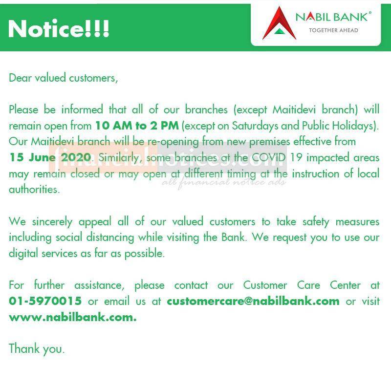 Nabil बैंकको शाखाहरु खुल्ने सम्बन्धि सूचना