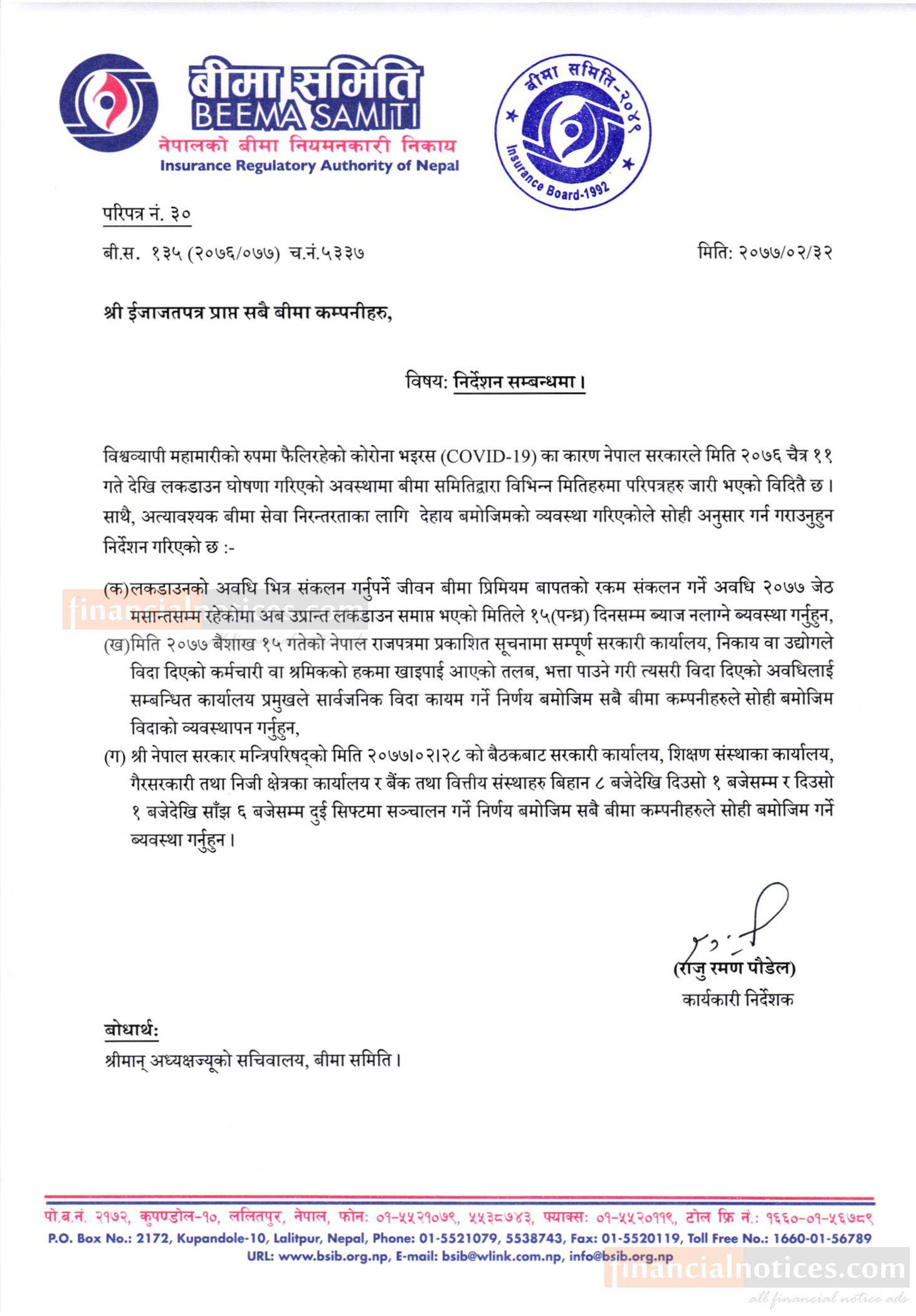 बीमा समितिद्धारा नयाँ निर्देशन जारी