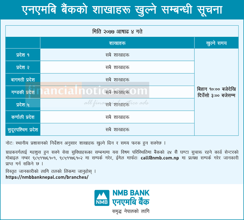NMB बैंकको शाखाहरु खुल्ने सम्बन्धि सूचना