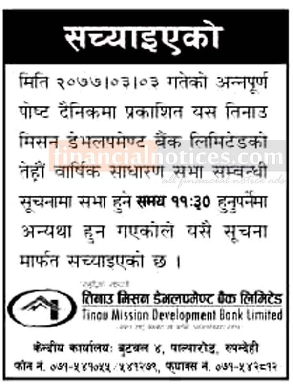 Published by Tinau Mission Dev. Bank Annapurna Post on 2077-3-04