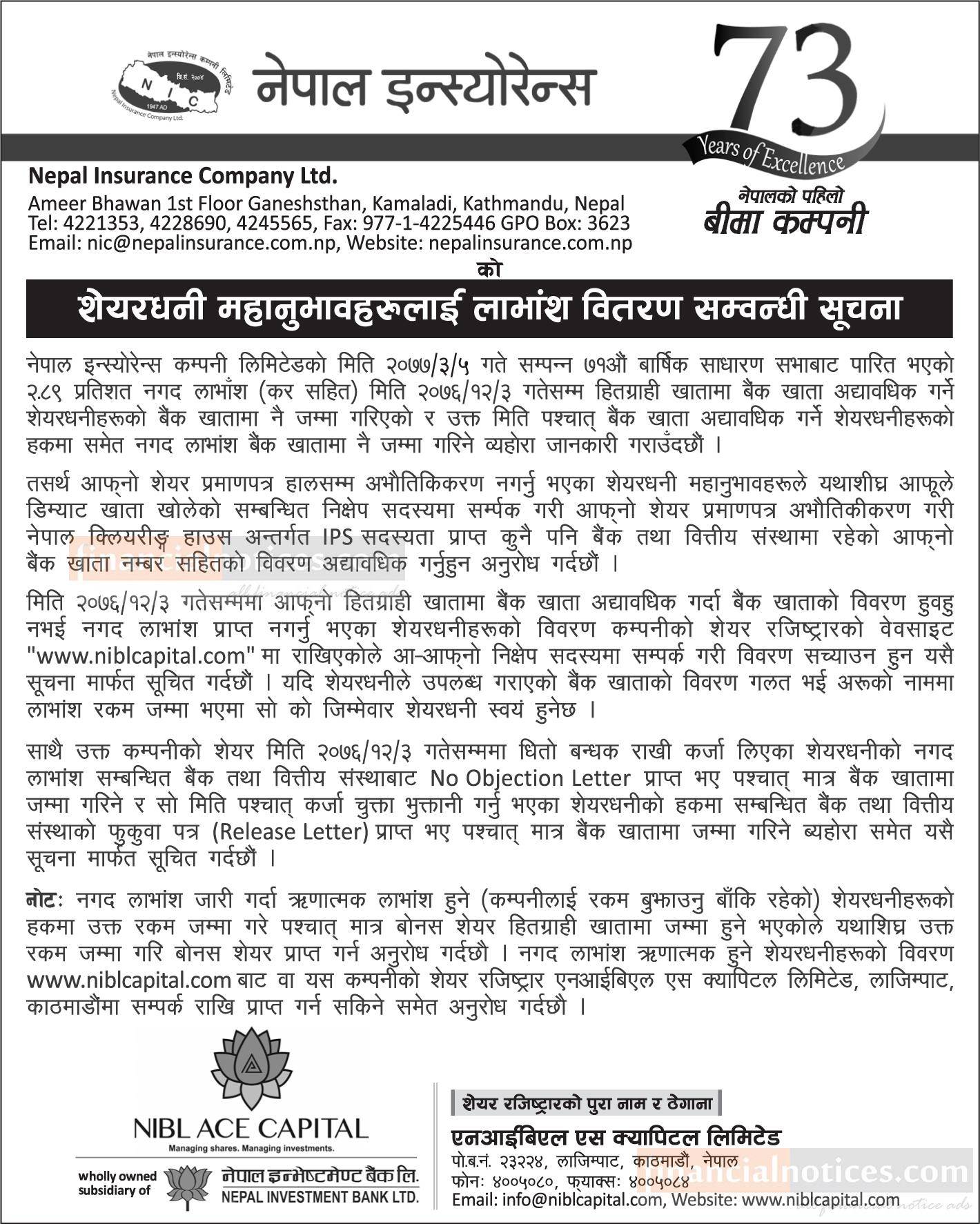 Published by Nepal Insurance Company Official Page on 2077-3-14