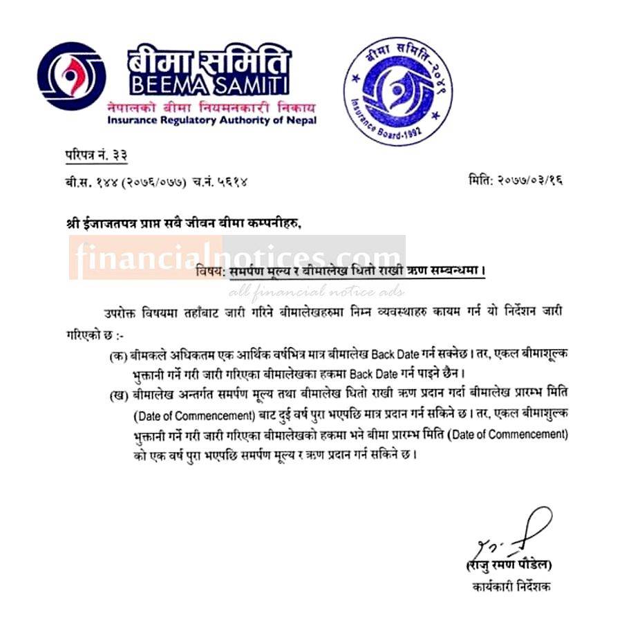 Published by Beema Pradhikaran Official Page on 2077-3-17