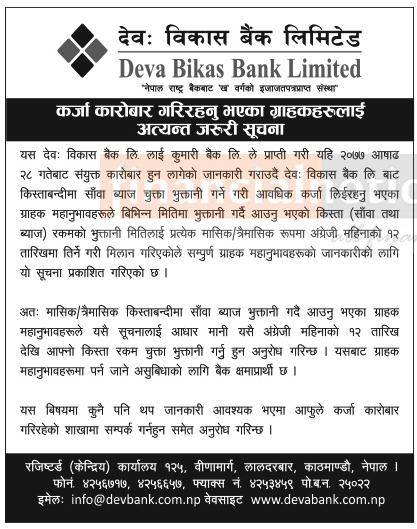 Published by Deva Bikas Bank Nagarik Daily on 2077-3-23