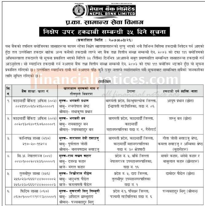 निक्षेप उपर हकदावीको ३५ दिने सूचना