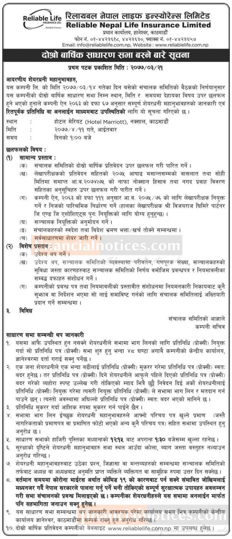 Published by Reliable Nepal Life Insurance Nayapatrika Daily on 2077-4-06