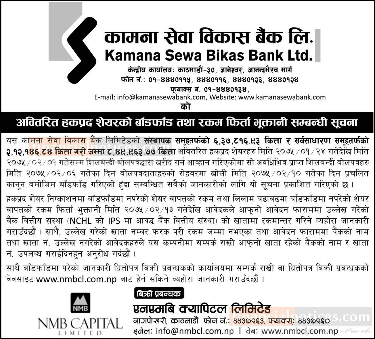 हकप्रद शेयरको बाँडफाँड तथा रकम फिर्ता भुक्तानीको सूचना !!!