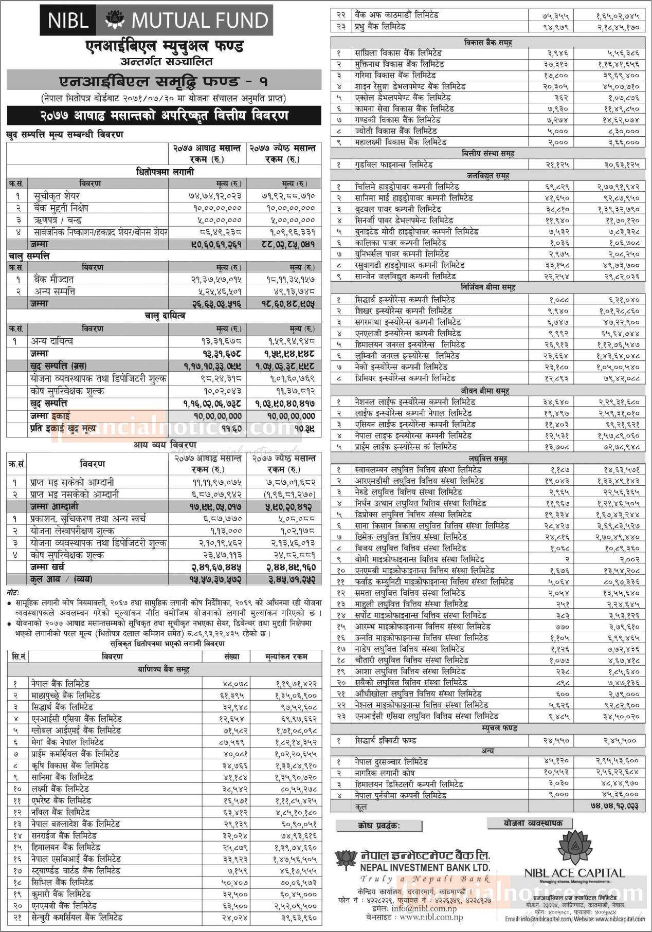 “NIBL Samriddhi Fund-1” Net Assets Value (NAV)