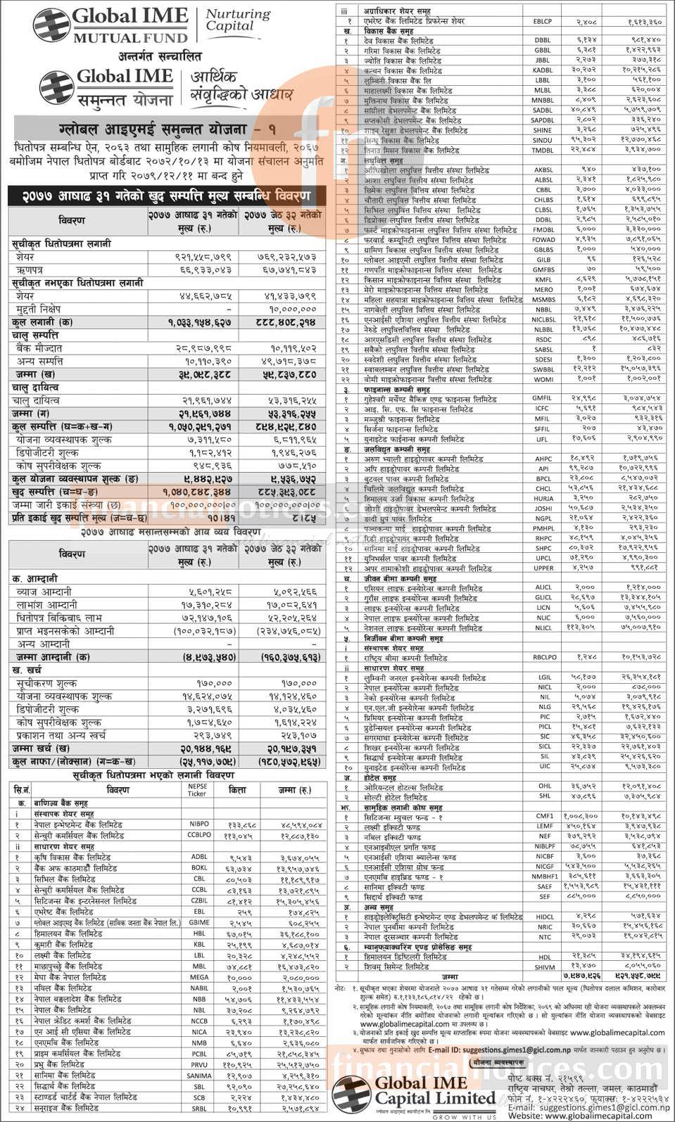(Global IME Samunnat Scheme-1) Net Assets Value