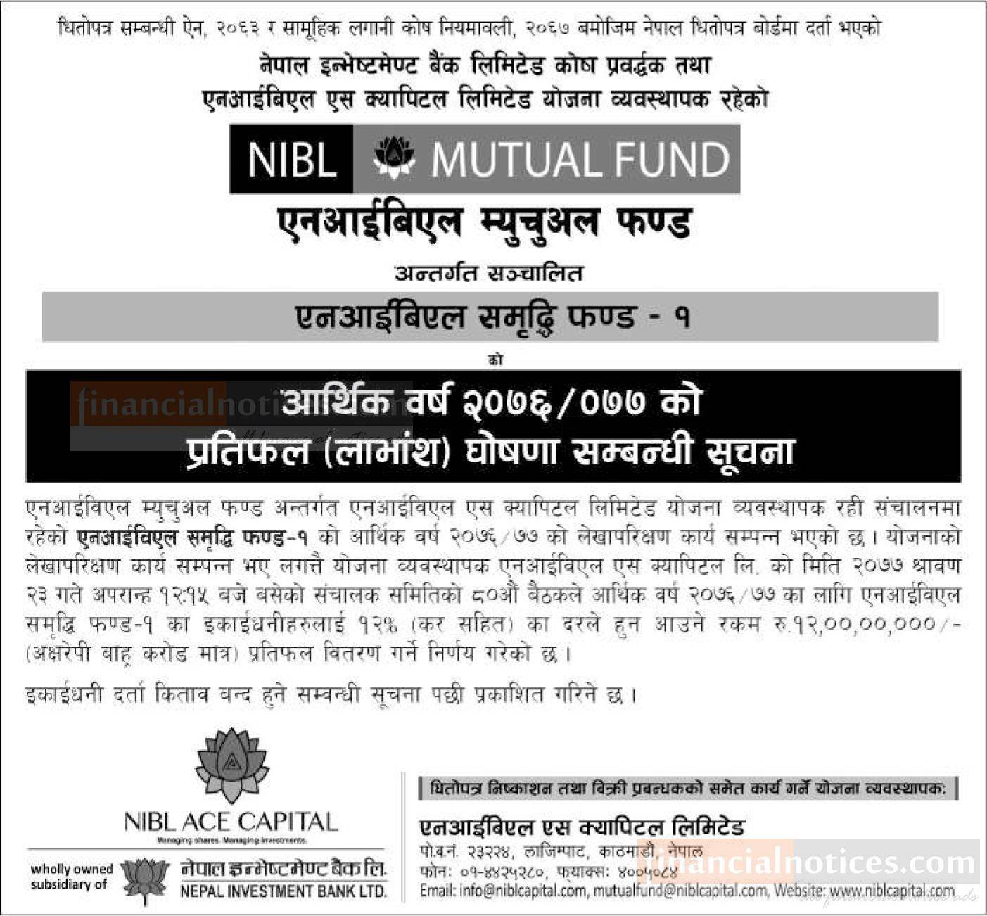 लाभांस घोषणा सम्बन्धी सूचना