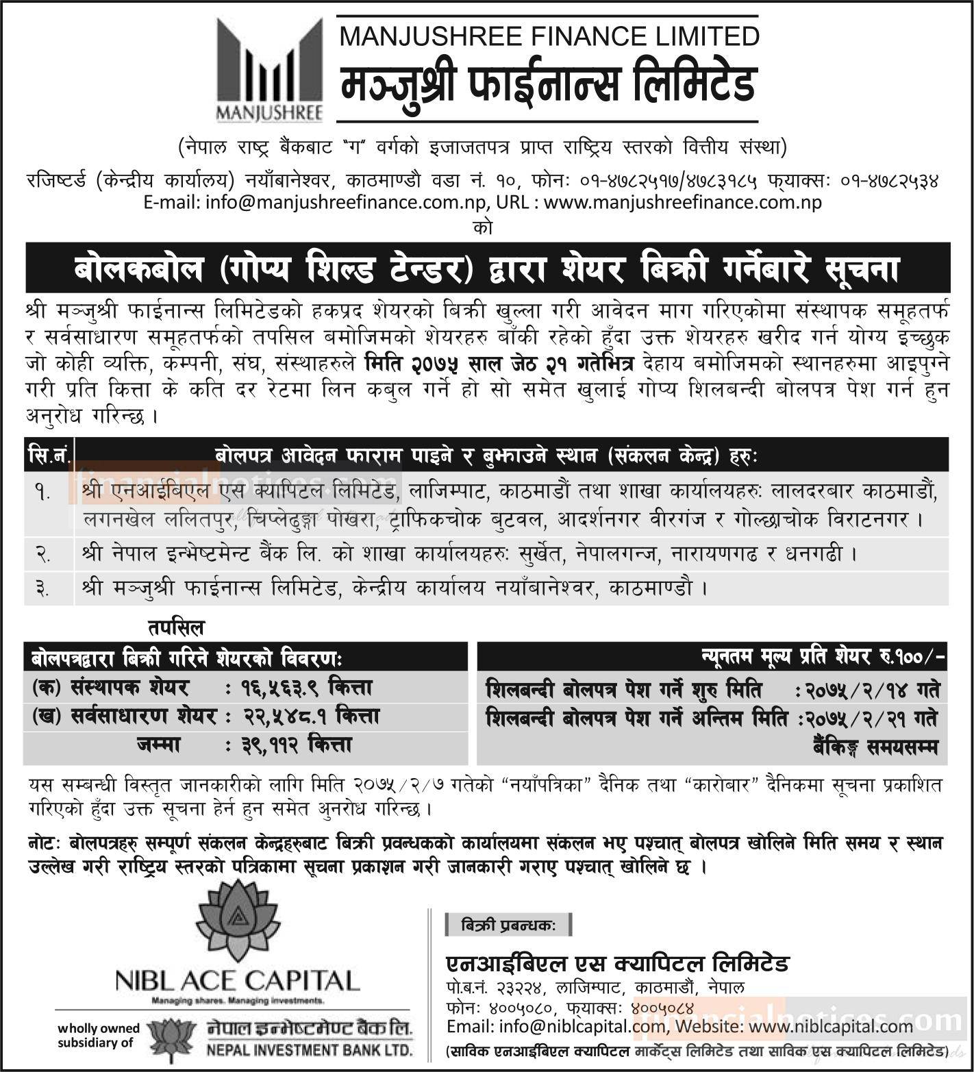 गोप्य सिल्ड टेण्डरद्वारा शेयर विक्रिको सूचना