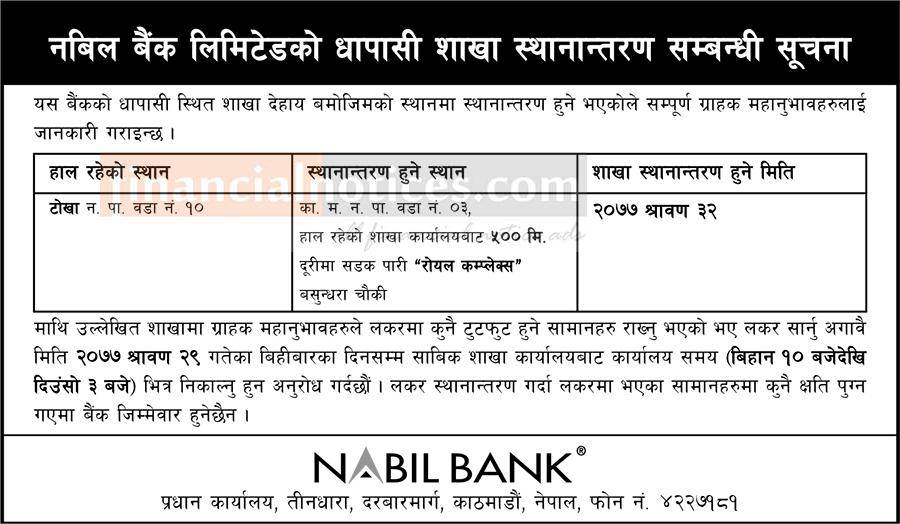 शाखा स्थानान्तरण सम्बन्धी सूचना