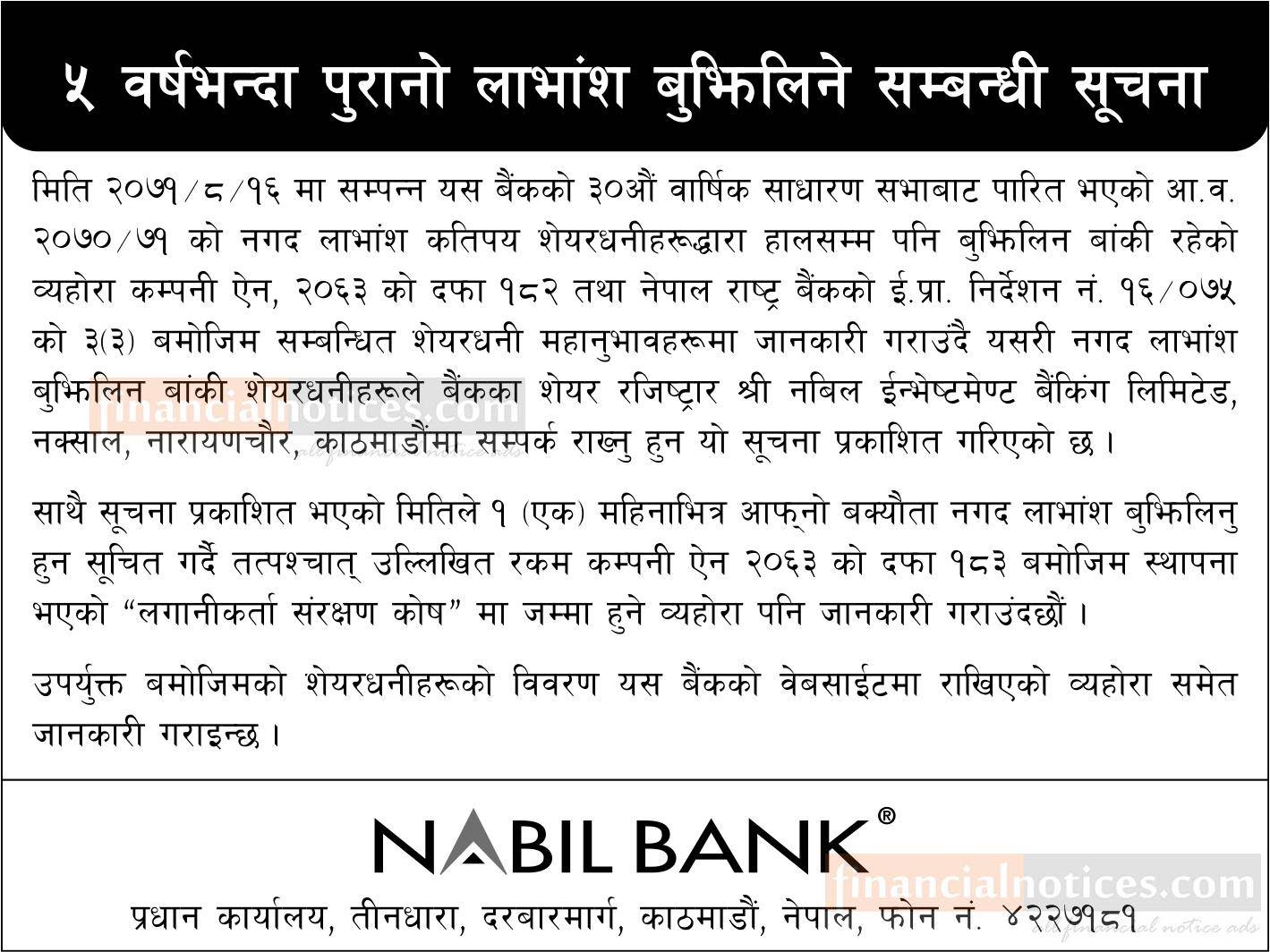 पुरानो लाभांस बुझिलिने बारे सूचना