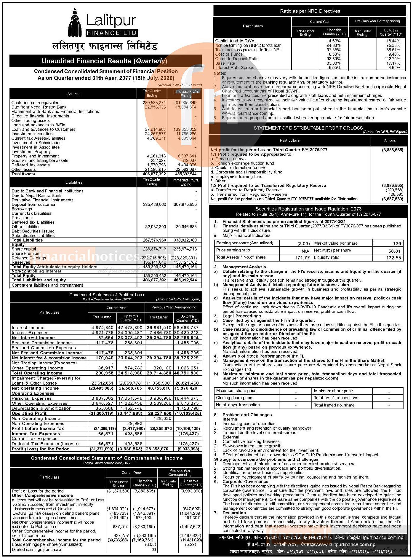 Nepal Finance Limited Reports Rs. 78.62 million Net Loss in Q3 FY 2082/83 -
