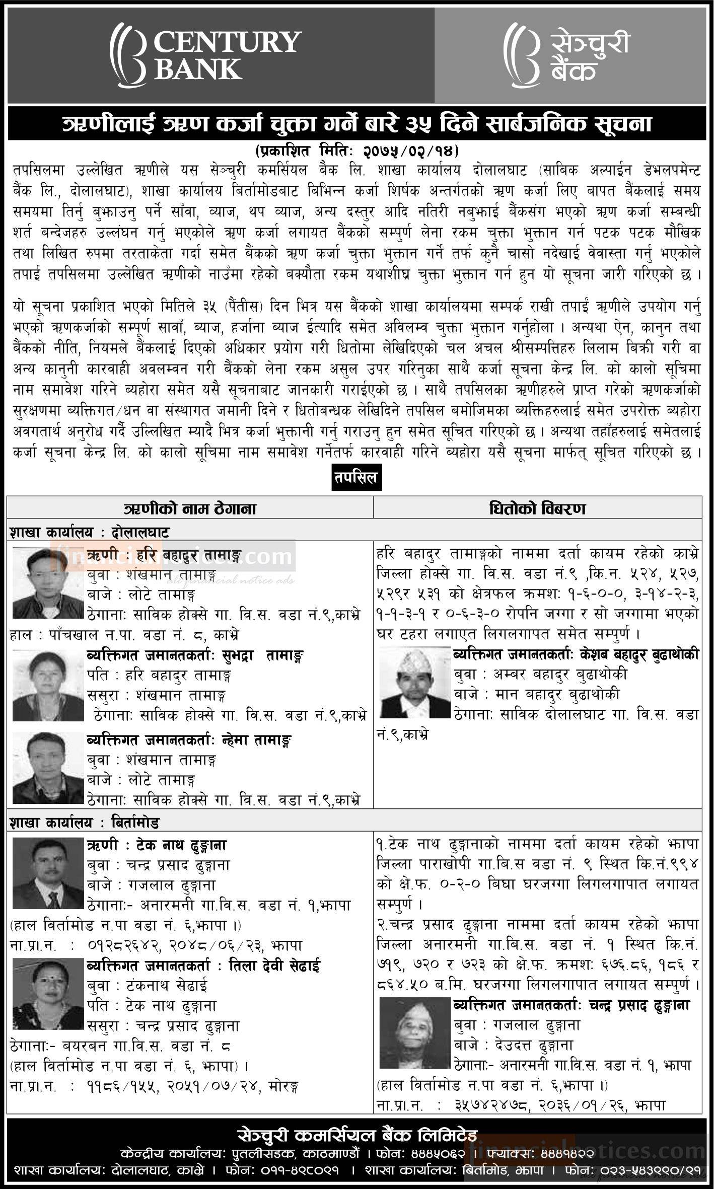 Published by Century Bank Ltd. Aarthik Abhiyan Newspaper on 2075-2-14