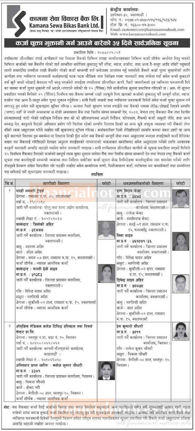 Published by Kamana Sewa Bikas Bank Official Page on 2077-5-01