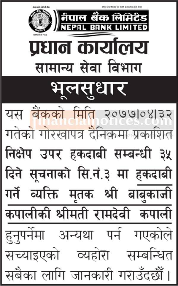 Published by Nepal Bank Limited Gorkha Patra on 2077-5-02