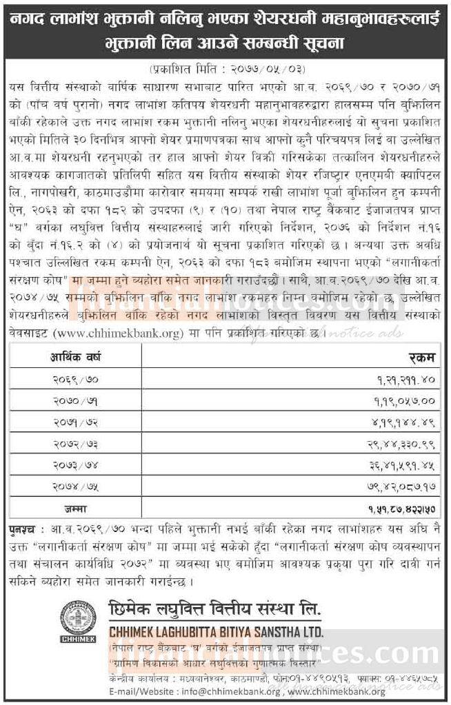 भुक्तानी लिन आउने सम्बन्धी सूचना