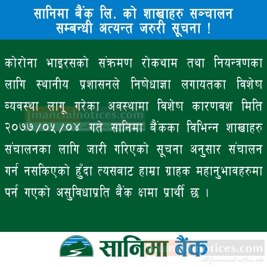 Published by Sanima Bank Limited Official Page on 2077-5-04