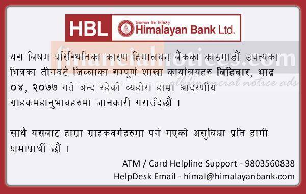 Published by Himalayan Bank Ltd Official Page on 2077-5-04
