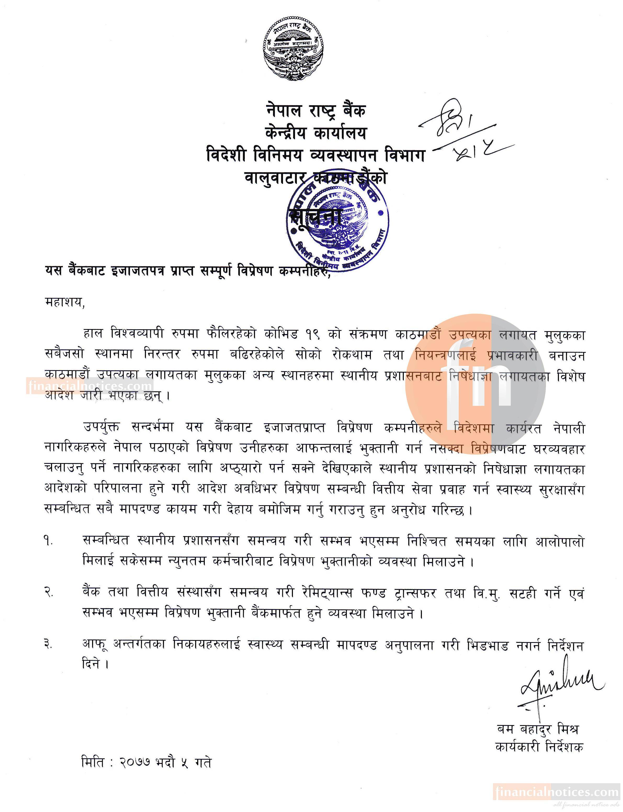 विप्रेषण कम्पनीहरुलाई आफ्ना सेवा सञ्चालन सम्बन्धमा राष्ट्र बैंकको महत्वपूर्ण सूचना