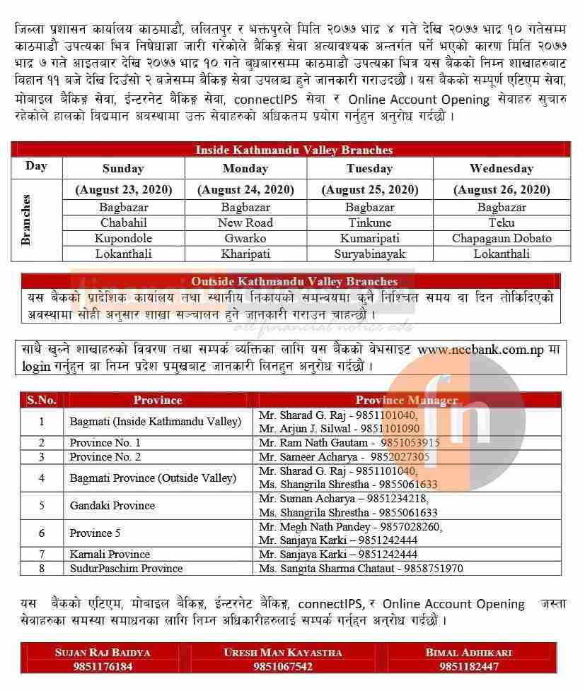 बैंकको बैंकिङ्ग सेवा सम्बन्धी सूचना