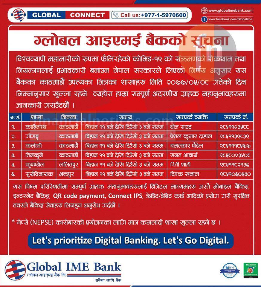 Published by Global IME Bank Official Page on 2077-5-08