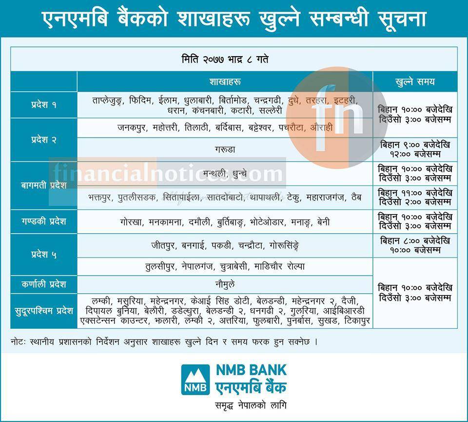 NMB बैंककोे शाखाहरु खुल्ने सम्बन्धी सूचना
