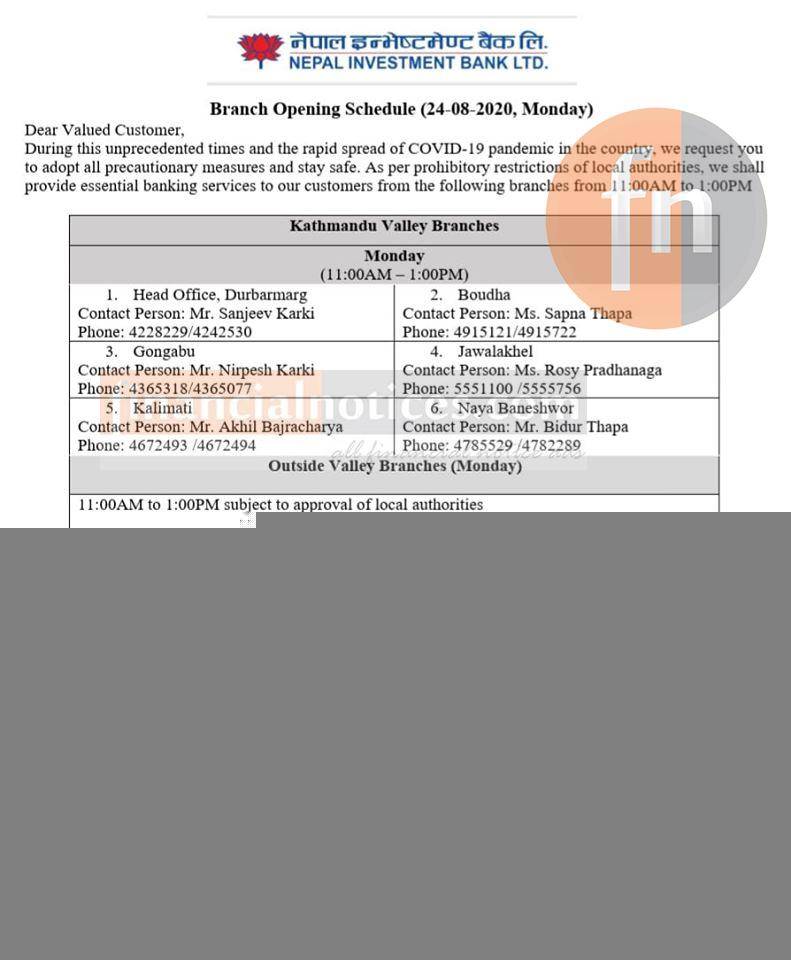 NIBL Branch Opening Schedule