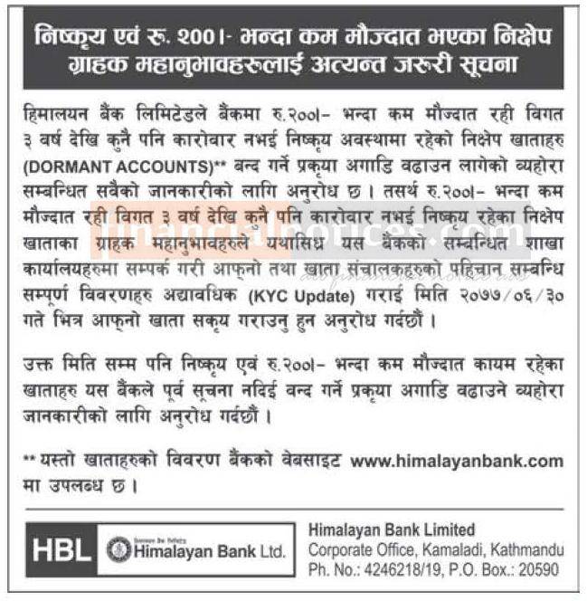 Published by Himalayan Bank Ltd Nayapatrika Daily on 2077-5-08