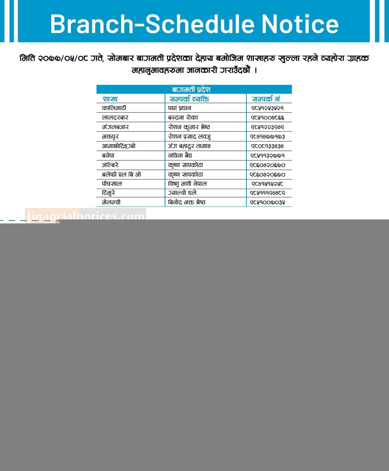 Branch Opening Schedule (Bagmati Province)