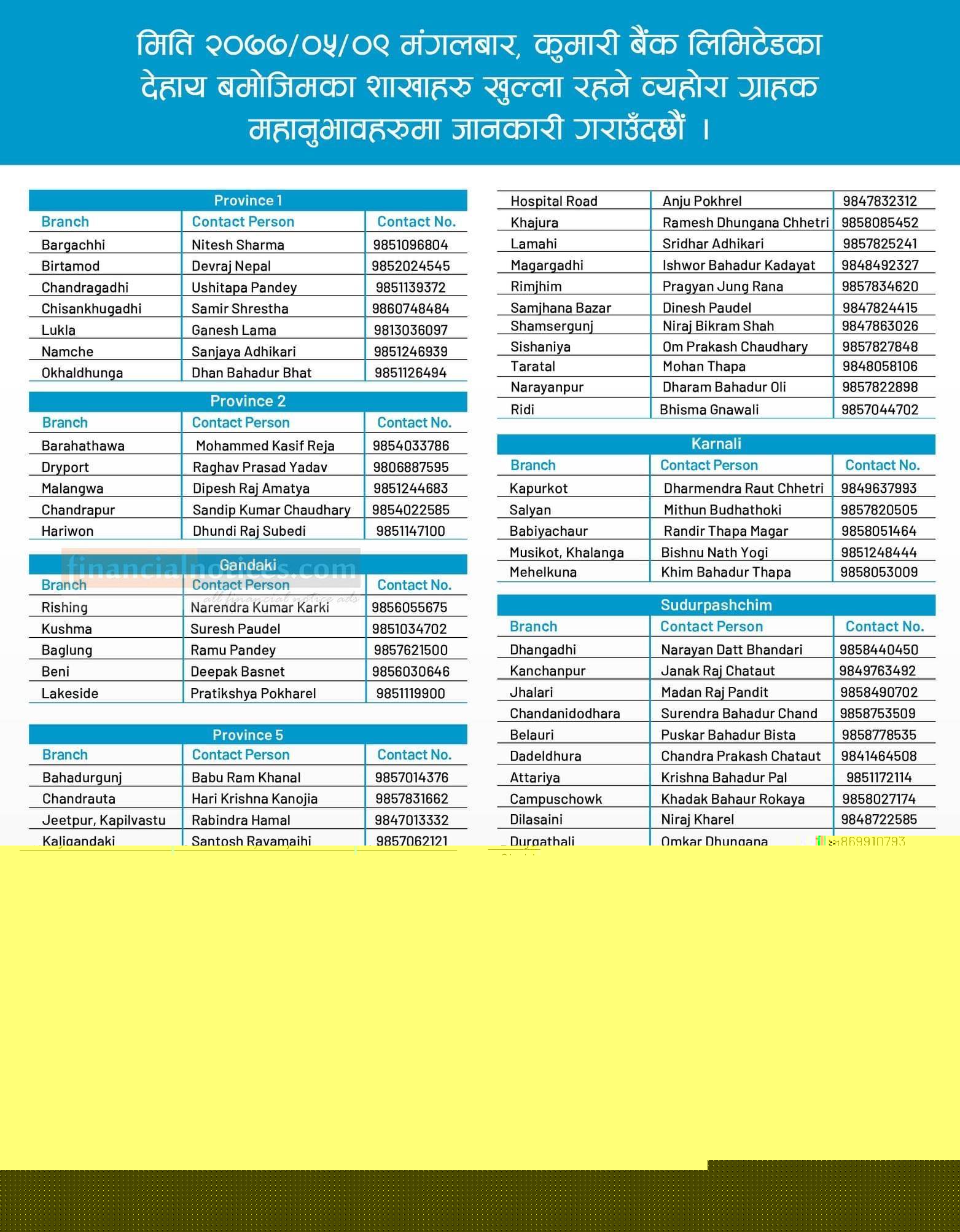Published by Kumari Bank Ltd (KBL) Official Page on 2077-5-09