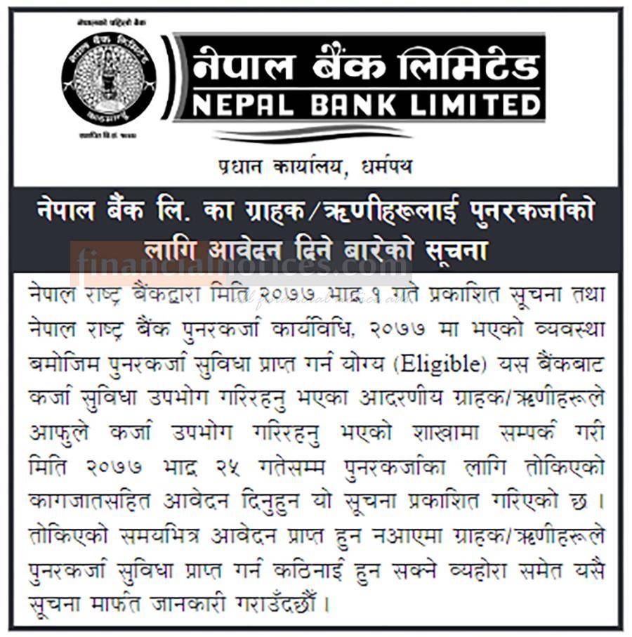 पुर्नकर्जाको लागि आवेदन दिने बारेको सूचना