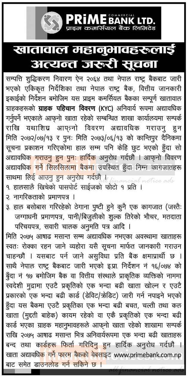 Published by Prime Bank Kantipur Newspaper on 2075-2-16
