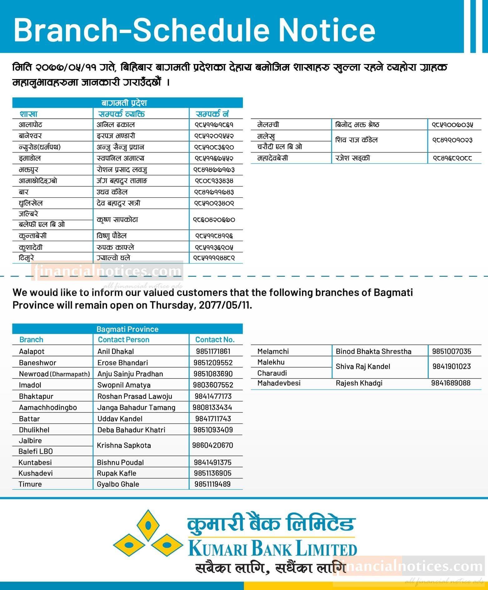 Published by Kumari Bank Ltd (KBL) on 2077-5-11
