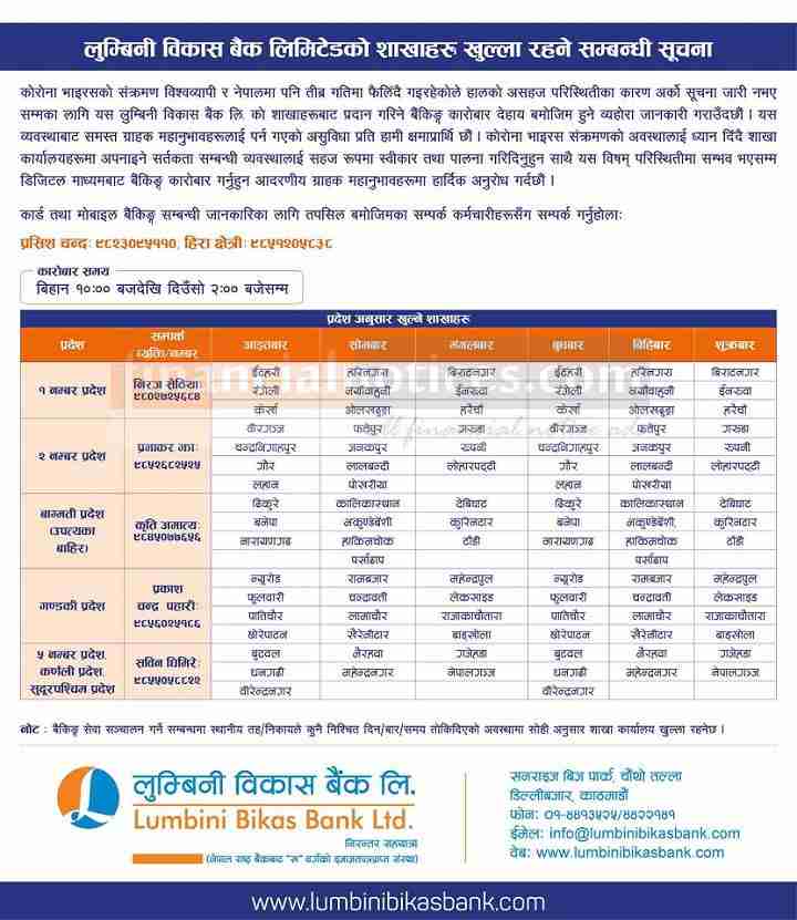 Lumbini Branch Opening Notice (Outside KTM Valley)