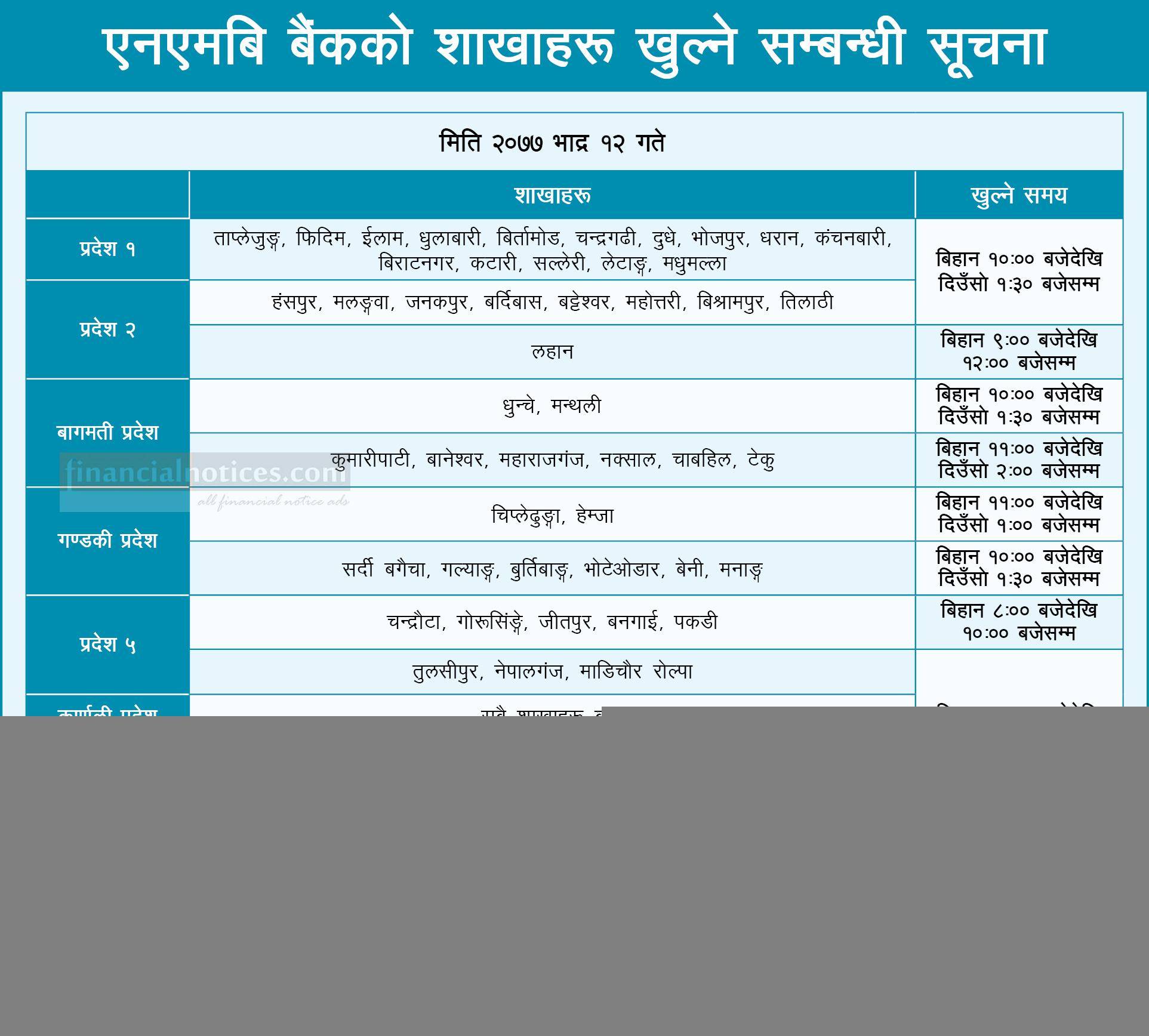 NMB बैंककोे शाखाहरु खुल्ने सम्बन्धी सूचना
