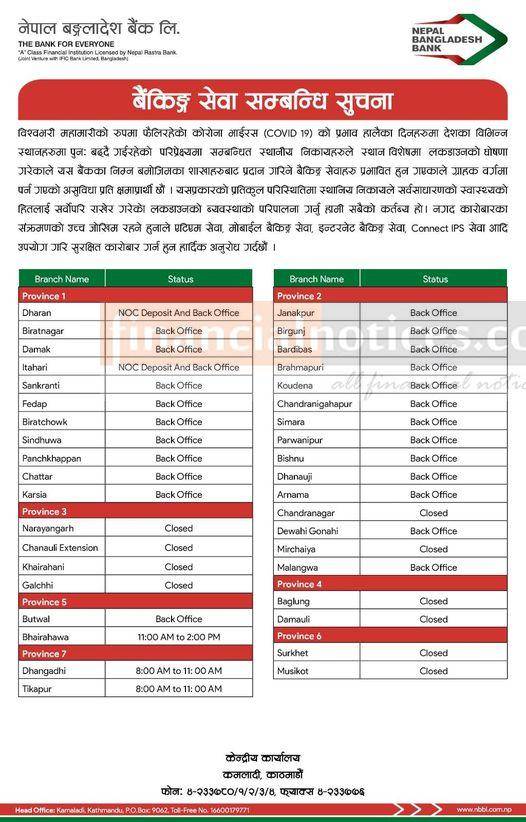 NB बैंकको काठमाडौं बाहिर खुल्ला रहने शाखहरु
