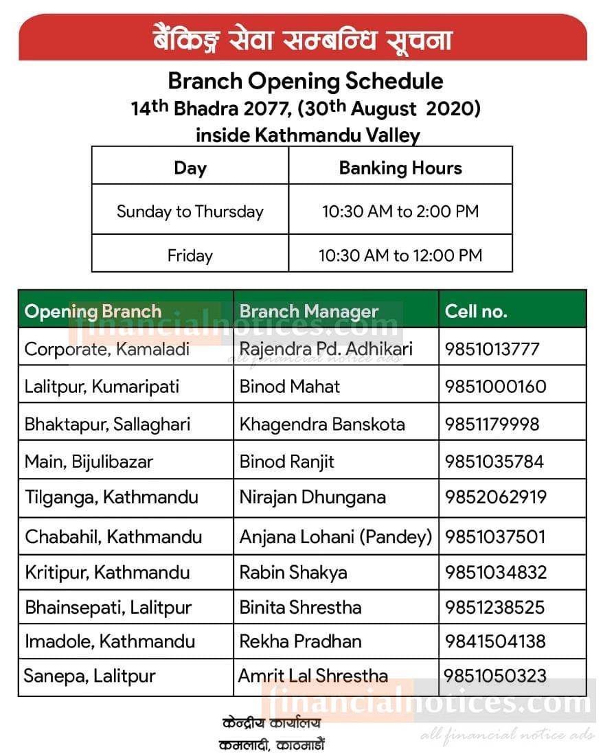 नेपाल बंगलादेश बैंकको खुल्ला रहने शाखाहरु