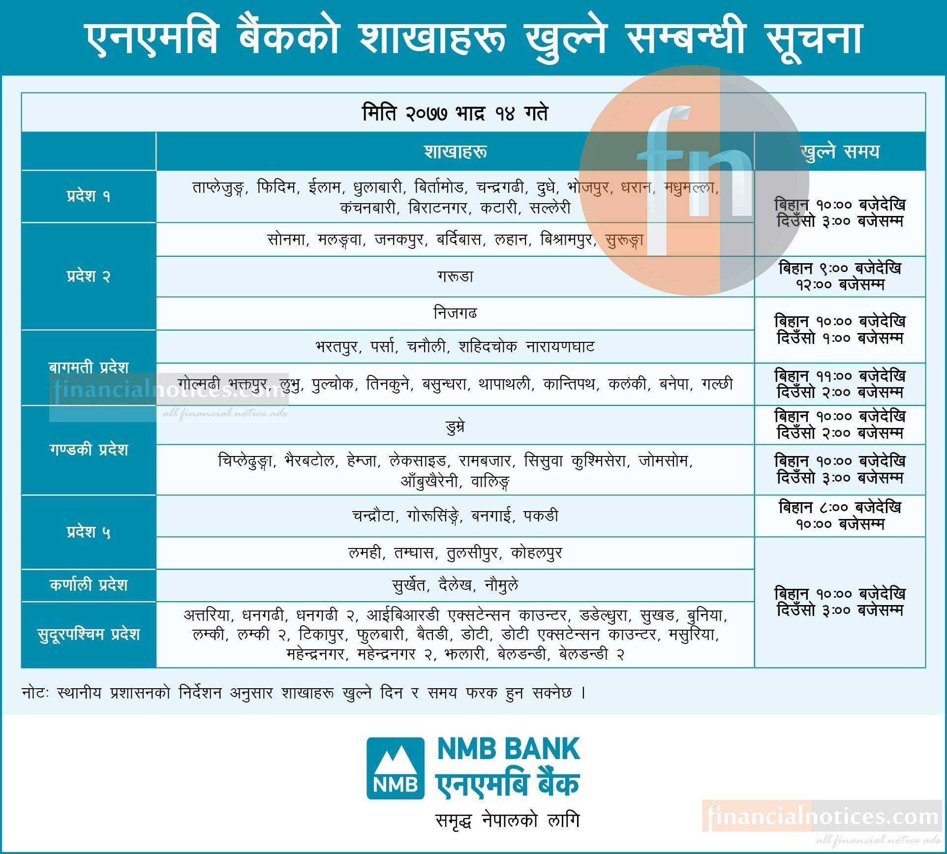 NMB बैंकको शाखा कार्यालयहरू खुल्ला रहने सम्बन्धी सूचना