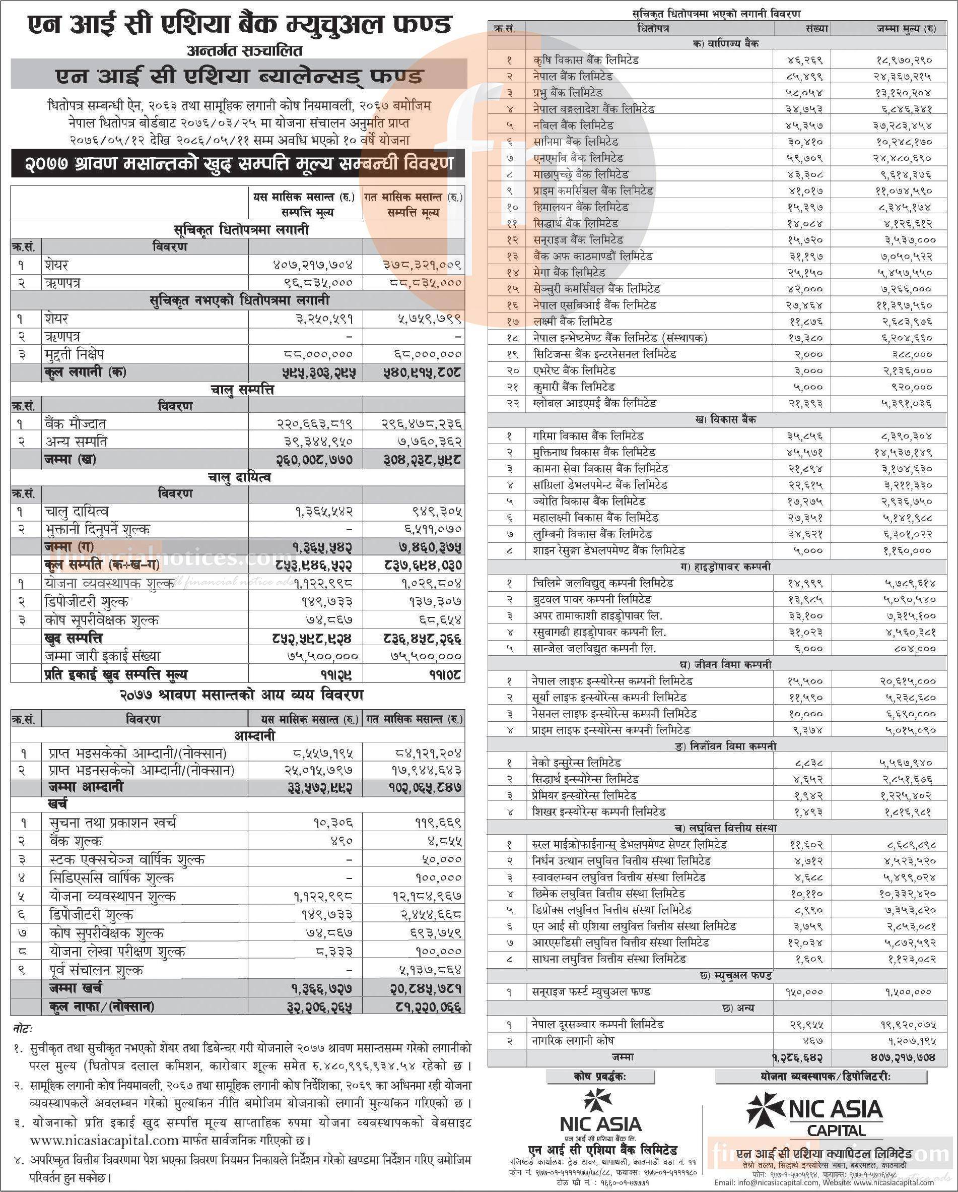 NIC Asia Balanced Fund- Net Assets Value