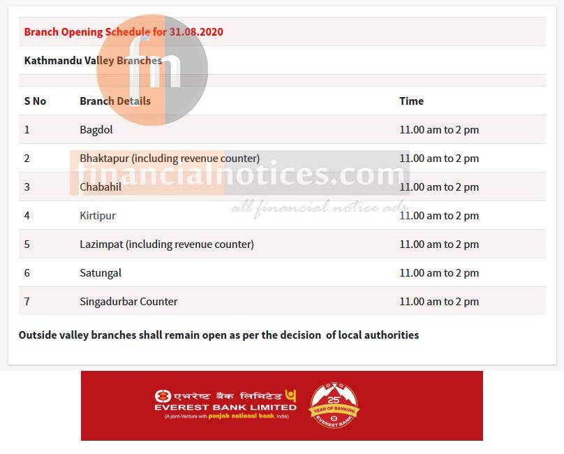 Everest Bank का शाखाहरु सञ्चालन रहने सम्बन्धी सूचना