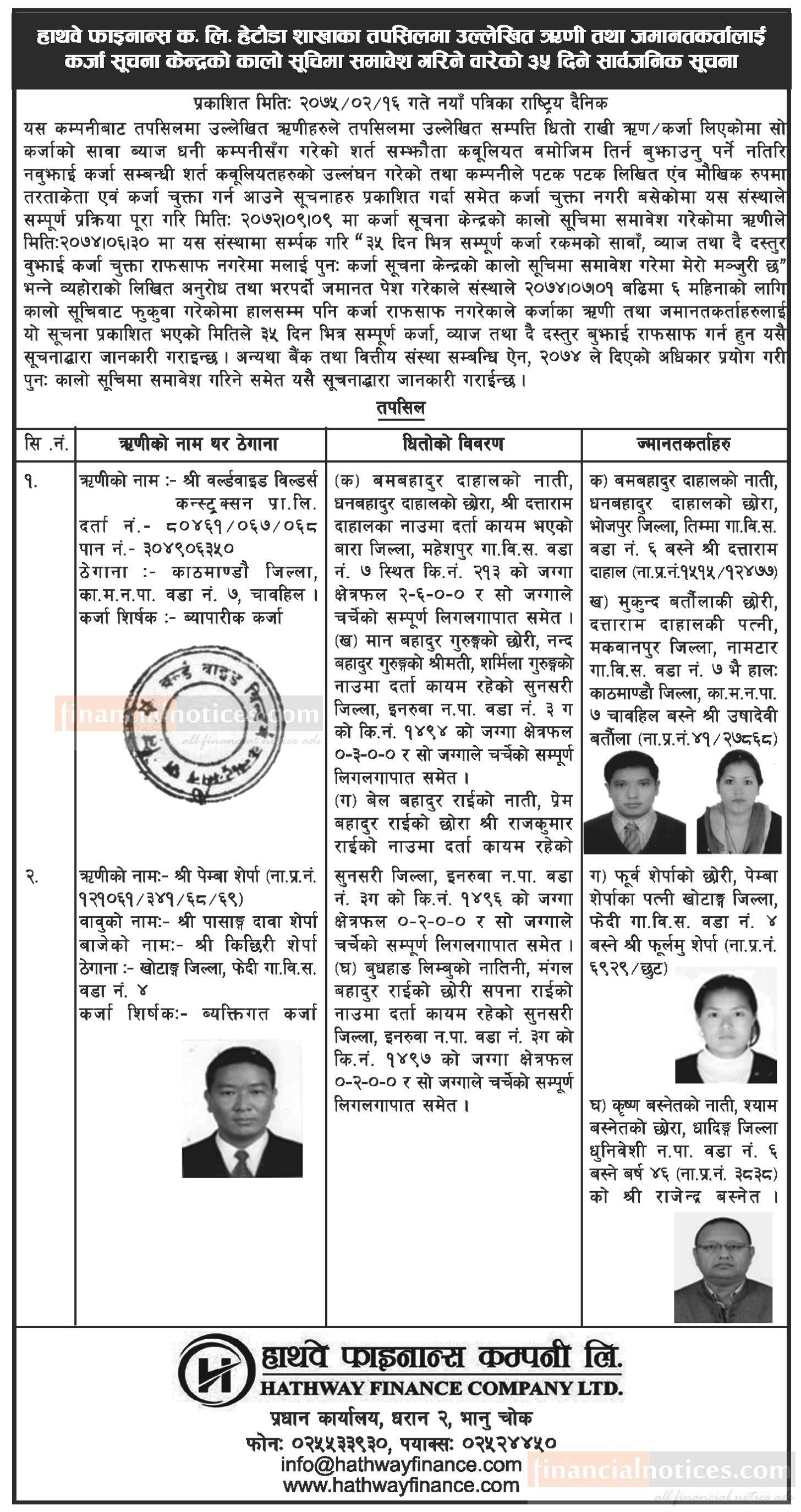 Published by Hathway Finance Company Limited Naya Patrika on 2075-2-17