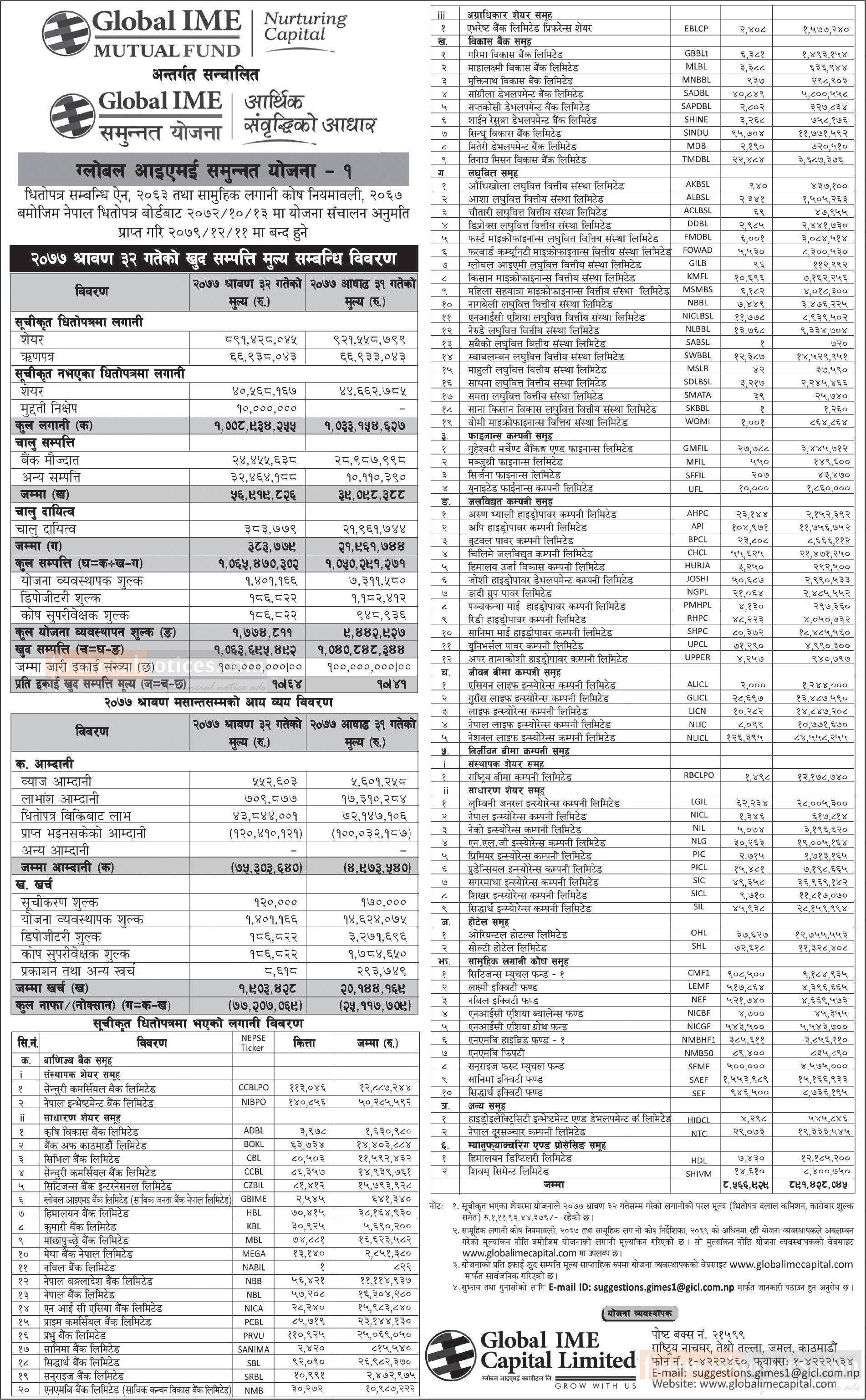 Global IME Samunnat Scheme-1 Net Assets Value