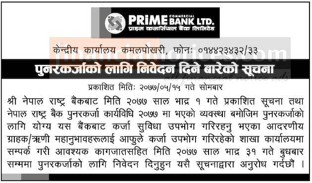 पुनरकर्जाको लागि आवेदन दिने बारेको सूचना