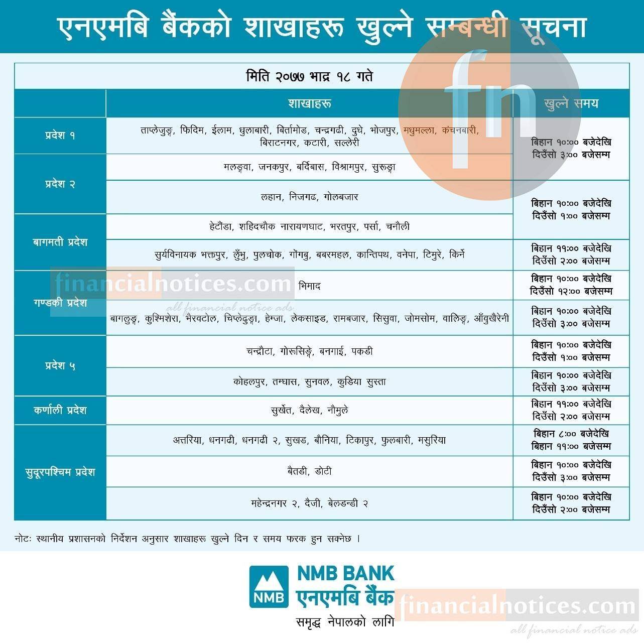 NMB बैंककोे शाखाहरु खुल्ने सम्बन्धी सूचना