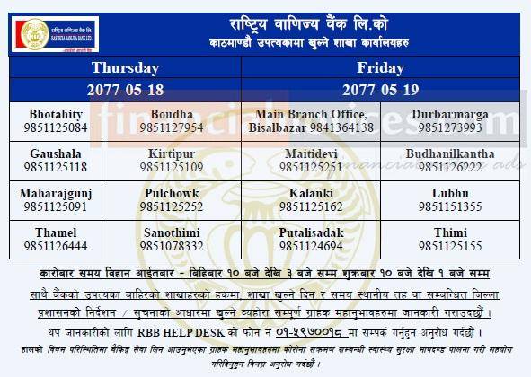 राष्ट्रिय वाणिज्य बैंकको खुल्ला रहने शाखा समय