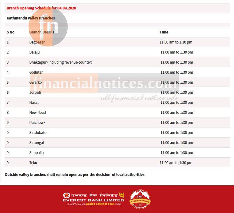 Everest Bank का शाखाहरु सञ्चालन रहने सम्बन्धी सूचना