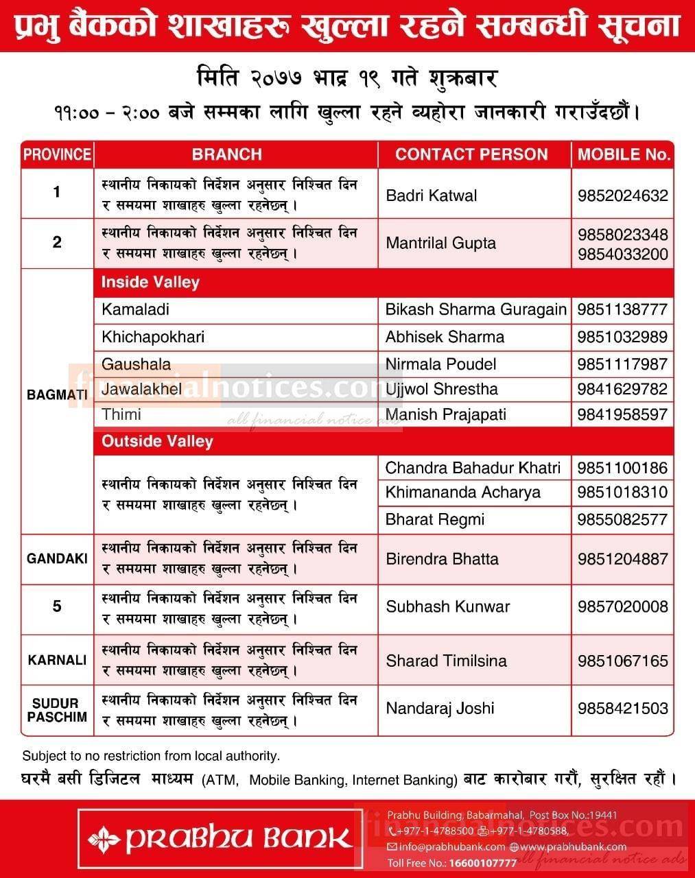Prabhu Branch Opening Notice